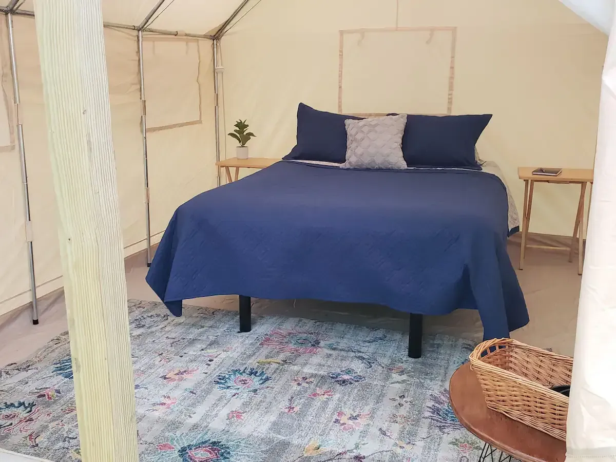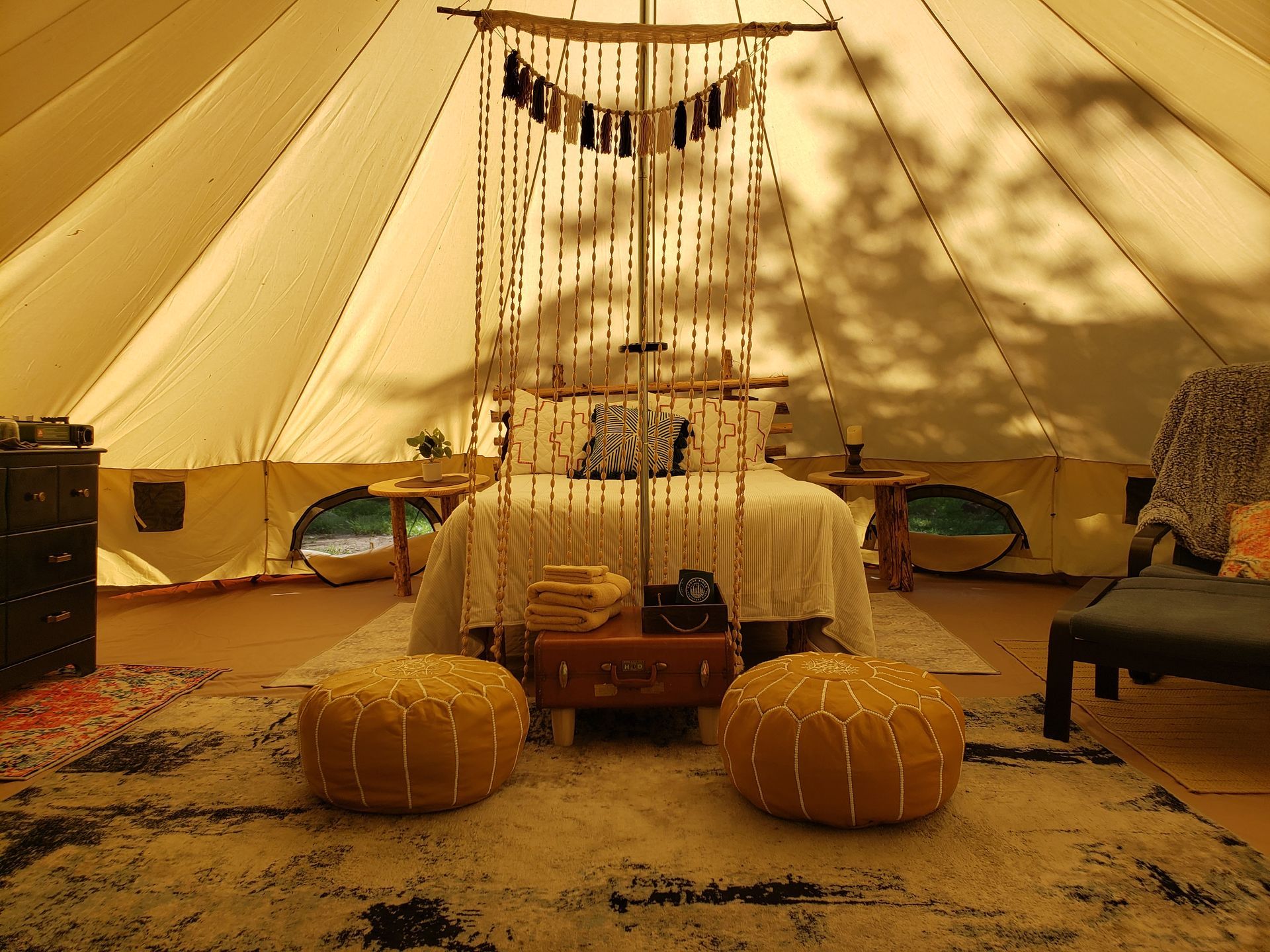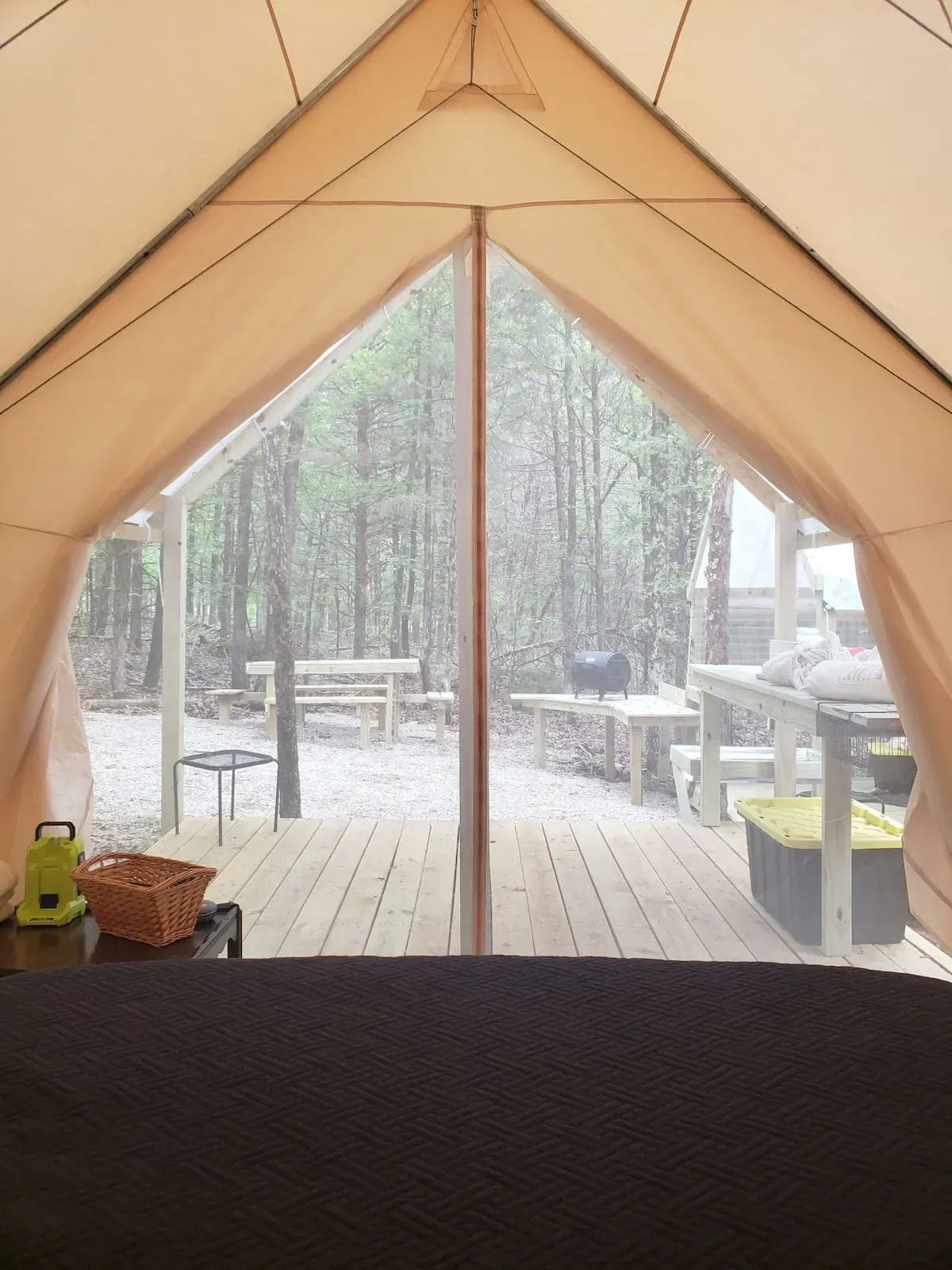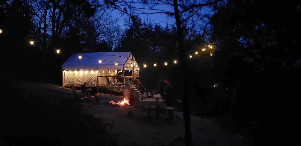 We take pride in offering an incredible and very UNIQUE camping experience. Our spacious, remote campground offers luxury furnished canvas tents and tiny house cabins with firepits, nature trails, swimming, kayaking, and fishing. Surrounded by towering trees and the soothing sounds of the river, you'll find peace and serenity at every corner.